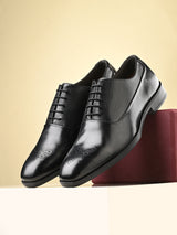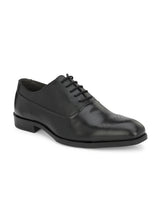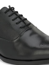 Keith Black Oxford Shoes with Textured Panels and Brogue Detailing. Handcrafted with Italian Leather Textured Upper, Faux Leather Lining & TPR Out Sole. Only Grade-A Leather used. San Frissco Luxor shoes are hand-finished and couture-level creations. Hence, each shoe will have a unique hue and polish, and the color may differ slightly from the picture. |