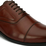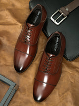 Ledger Cherry pointed-toe formal oxfords with central lace-ups. Handcrafted with high quality faux leather upper, PU lining along with a cushioned footbed and a textured and patterned TPR outsole, that has a stacked heel. Only Grade-A quality materials are used. San Frissco shoes are all handcrafted to perfection by expert artisans to offer a truly luxe and affordable experience. Hence, each shoe will have a unique hue and polish, and the color may differ slightly from the picture.