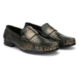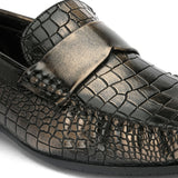 Dulcia Gold/Black Textured Driving Loafers. Handcrafted with Faux Leather Upper,Lining, Inner Soles & TPR multipiece OutSole. Only Grade-A Quality materials are used. San Frissco shoes are all handcrafted to perfection by expert artisans to offer a truly luxe and affordable experience. Hence, each shoe will have a unique hue and polish and the color may differ slightly from the picture.