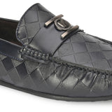 Newman Blue Driving Loafers With Textured Upper and Buckle Detailing. Handcrafted with High Quality Faux Leather upper, Lining & TPR Sole. Only Grade-A quality materials used. San Frissco shoes are all handcrafted to perfection by expert artisans to offer a truly luxe and affordable experience. Hence, each shoe will have a unique hue and polish, and the color may differ slightly from the picture.