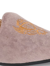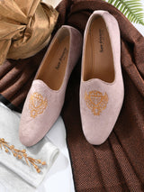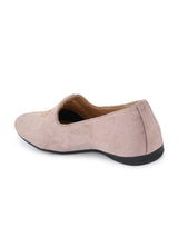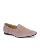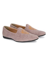 Odette Pink Embroidered Loafers with a Textured Upper. Handcrafted with Velveteen Upper, Genuine Leather Lining & TPR Out Sole. Only Grade-A Leather used. San Frissco Luxor shoes are hand-finished and couture-level creations. Hence, each shoe will have a unique hue and polish, and the color may differ slightly from the picture.