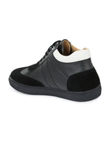| Pace Black High Ankle Comfort Sneakers. Handcrafted with Faux Leather Upper, Mesh lining & TPR Sole. Only Grade-A Quality materials are used. San Frissco shoes are all handcrafted to perfection by expert artisans to offer a truly luxe and affordable experience. Hence, each shoe will have a unique hue and polish, and the color may differ slightly from the picture. |