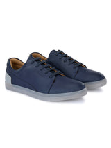 Peyton Navy Casual Sneakers With Contrasting Back Panel. Handcrafted with High Quality Faux Leather, Lining & TPR Sole. Only Grade-A quality materials used. San Frissco shoes are all handcrafted to perfection by expert artisans to offer a truly luxe and affordable experience. Hence, each shoe will have a unique hue and polish, and the color may differ slightly from the picture.