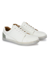 Peyton White Casual Sneakers with Contrasting Back Panel. Handcrafted with High Quality Faux Leather Upper, Mesh Lining & TPR Sole. Only Grade-A quality materials are used. San Frissco shoes are all handcrafted to perfection by expert artisans to offer a truly luxe and affordable experience. Hence, each shoe will have a unique hue and polish, and the color may differ slightly from the picture.