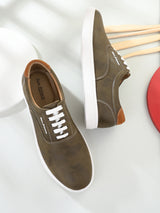 | Powercourt Olive Casual Sneakers with Contrasting Outsole and Stitching. Handcrafted with Faux Leather Upper, Mesh lining & TPR Sole. Only Grade-A Quality materials are used. San Frissco shoes are all handcrafted to perfection by expert artisans to offer a truly luxe and affordable experience. Hence, each shoe will have a unique hue and polish, and the color may differ slightly from the picture. |