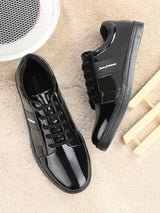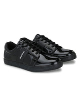 | Reform Black Patent Sneakers with side Panel logo Detailing. Handcrafted with Faux Leather Upper, lining & TPR Sole. Only Grade-A Quality materials are used. San Frissco shoes are all handcrafted to perfection by expert artisans to offer a truly luxe and affordable experience. Hence, each shoe will have a unique hue and polish, and the color may differ slightly from the picture. |