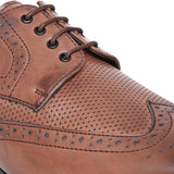 This product is made from synthetic material on the inside and outside and is finished in tan color. It features pu sole, lace-up closure, and are designed to be used as formal wear footwear. Furthermore, it is recommended to be kept away from extreme heat and corrosive liquids to avoid damage.