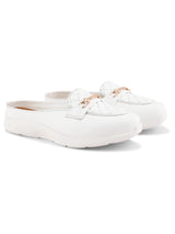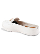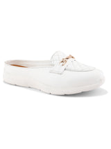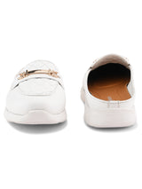 | Scone White Women Ultra-light Comfort Mules with Buckle Detailing & Cushioned footbed. Handcrafted with High Quality Faux Leather Upper, Lining, Inner Soles and Textured and patterned EVA outsole. Only Grade-A Quality materials are used. San Frissco shoes are all handcrafted to perfection by expert artisans to offer a truly luxe and affordable experience. Hence, each shoe will have a unique hue and polish, and the color may differ slightly from the picture. |