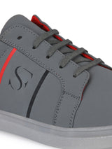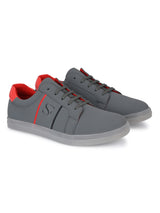 Seize Dark Grey & Red Comfort Sneakers. Handcrafted with High Quality Faux Leather Upper, Mesh Lining & TPR Sole. Only Grade-A quality materials are used. San Frissco shoes are all handcrafted to perfection by expert artisans to offer a truly luxe and affordable experience. Hence, each shoe will have a unique hue and polish, and the color may differ slightly from the picture.