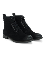 | Staple Black Lace-Up Boots. Handcrafted with High Quality Faux Leather, PU Lining & TPR Sole. Only Grade-A quality materials used. San Frissco shoes are all handcrafted to perfection by expert artisans to offer a truly luxe and affordable experience. Hence, each shoe will have a unique hue and polish, and the color may differ slightly from the picture. |