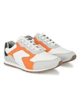 Supernova Grey-Orange Color block Sneakers. Handcrafted with High Quality Faux Leather Upper, Mesh Lining & TPR Sole. Only Grade-A quality materials are used. San Frissco shoes are all handcrafted to perfection by expert artisans to offer a truly luxe and affordable experience. Hence, each shoe will have a unique hue and polish, and the color may differ slightly from the picture.