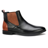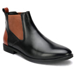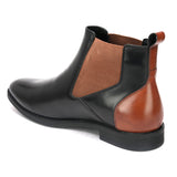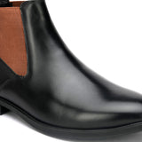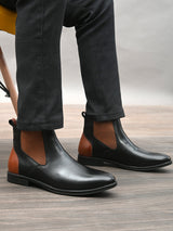 Theory Black Chelsea Boots with Brown Detailing. Handcrafted with High Quality Faux Leather, PU Lining & TPR Sole. Only Grade-A quality materials used. San Frissco shoes are all handcrafted to perfection by expert artisans to offer a truly luxe and affordable experience. Hence, each shoe will have a unique hue and polish, and the color may differ slightly from the picture.