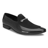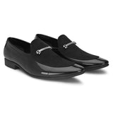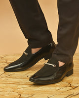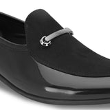 Valerio Black Buckle Slip-Ons with Patent Finish & Suede Accent. Handcrafted with High Quality Faux Leather Upper & Lining, PU Sole. Only Grade-A quality materials used. San Frissco shoes are all handcrafted to perfection by expert artisans to offer a truly luxe and affordable experience. Hence, each shoe will have a unique hue and polish, and the color may differ slightly from the picture.