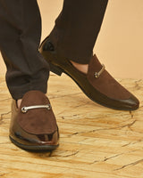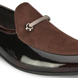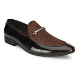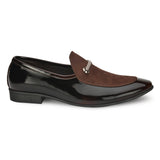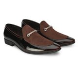 Valerio Dark Brown Buckle Slip-Ons with Patent Finish & Suede Accent. Handcrafted with High Quality Faux Leather Upper & Lining, PU Sole. Only Grade-A quality materials used. San Frissco shoes are all handcrafted to perfection by expert artisans to offer a truly luxe and affordable experience. Hence, each shoe will have a unique hue and polish, and the color may differ slightly from the picture.