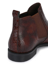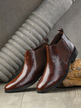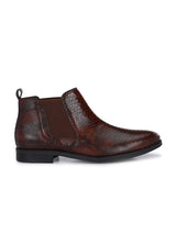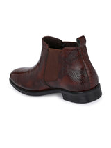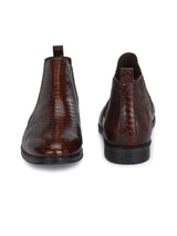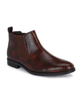 Virtus Brown Textured Chelsea Boots. Handcrafted with High Quality Faux Leather, PU Lining & TPR Sole. Only Grade-A quality materials used. San Frissco shoes are all handcrafted to perfection by expert artisans to offer a truly luxe and affordable experience. Hence, each shoe will have a unique hue and polish, and the color may differ slightly from the picture.