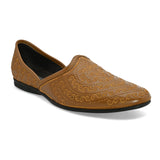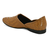 Atlantis Tan Embroidered Mojaris. Handcrafted with High Quality Faux Leather PU Lining & TPR Sole Only Grade-A quality materials used San Frissco shoes are all handcrafted to perfection by expert artisans to offer a truly luxe and affordable experience. Hence, each shoe will have a unique hue and polish, and the color may differ slightly from the picture.