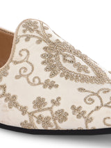 Waris Beige Hand Embroidered Mojaris with Gold Threadwork. Handcrafted with Hand Embroidered Upper, Faux Leather Lining, Inner Soles & TPR OutSole. Only Grade-A Quality materials are used. San Frissco shoes are handcrafted perfectly by expert artisans to offer a truly luxe and affordable experience. Hence, each shoe will have a unique hue and polish, and the color may differ slightly from the picture. |