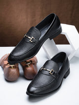 Sawyer Black Textured Slip-Ons with Vintage Buckle Detailing. Handcrafted with High Quality Faux Leather Upper, Lining, Inner Soles & TPR OutSole. Only Grade-A Quality materials are used. San Frissco shoes are all handcrafted to perfection by expert artisans to offer a truly luxe and affordable experience. Hence, each shoe will have a unique hue and polish, and the color may differ slightly from the picture. |
