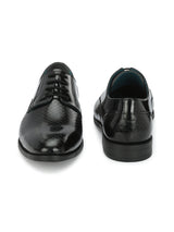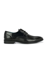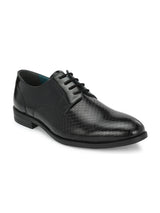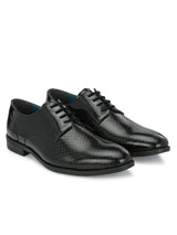 Balmoral Black Derby Shoes with Patent Finishing and a Textured Upper. Handcrafted with High Quality Faux Leather, PU Lining & TPR Sole. Only Grade-A quality materials used. San Frissco shoes are all handcrafted to perfection by expert artisans to offer a truly luxe and affordable experience. Hence, each shoe will have a unique hue and polish, and the color may differ slightly from the picture.