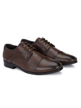 | Beacon Brown Cap-Toe Oxford Shoes. Handcrafted with Faux Leather Upper, lining & TPR Sole. Only Grade-A Quality materials are used. San Frissco shoes are all handcrafted to perfection by expert artisans to offer a truly luxe and affordable experience. Hence, each shoe will have a unique hue and polish, and the color may differ slightly from the picture. |