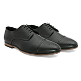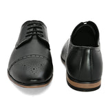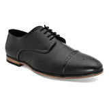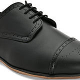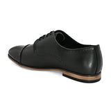 Blair Black Formal Oxford Shoes with Cap Toe Brogue Detailing. Handcrafted with High Quality Faux Leather PU Lining & TPR Sole Only Grade-A quality materials used. San Frissco shoes are all handcrafted to perfection by expert artisans to offer a true luxe and affordable experience. Hence, each shoe will have a unique hue and polish, and the color may differ slightly from the picture.
