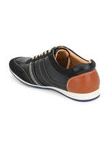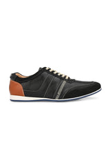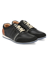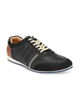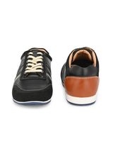 Bridge Black Sneakers with Contrast Panels. Handcrafted with High Quality Faux Leather PU Lining & TPR Sole Only Grade-A qualty materials usedSan Frissco shoes are all handcrafted to perfection by expert artisants to offer a truely luxe and affordable exerience. Hence, each shoe will have a unique hue and polish, and the color may differ slightly from the picture.