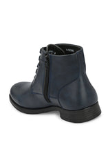 Conor Blue Lace-Up Boots. Handcrafted with High Quality Faux Leather Upper,Lining & TPR Sole. Only Grade-A quality materials used. San Frissco shoes are all handcrafted to perfection by expert artisans to offer a truly luxe and affordable experience. Hence, each shoe will have a unique hue and polish, and the color may differ slightly from the picture.