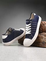 | Core Blue Canvas Sneakers with Contrast Stitching. Handcrafted with High Quality Faux Leather Upper, Lining & Rubber Sole. Only Grade-A quality materials used. San Frissco shoes are all handcrafted to perfection by expert artisans to offer a truly luxe and affordable experience. Hence, each shoe will have a unique hue and polish, and the color may differ slightly from the picture. |