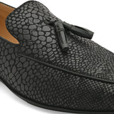 Dabble Black Textured Tassel Loafers. Handcrafted with High Quality Faux Leather, PU Lining & TPR Sole Only Grade-A quality materials used.San Frissco shoes are all handcrafted to perfection by expert artisans to offer a true luxe and affordable experience. Hence, each shoe will have a unique hue and polish, and the color may differ slightly from the picture.