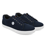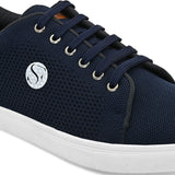 Dart Navy Blue Casual Sneakers with SF Logo detailing. Handcrafted with High Quality Fly Knit Upper, PU Lining & TPR Sole Only Grade-A quality materials used.San Frissco shoes are all handcrafted to perfection by expert artisans to offer a true luxe and affordable experience. Hence, each shoe will have a unique hue and polish, and the color may differ slightly from the picture.