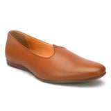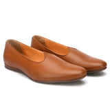 | Moira Tan Solid Mojaris. Handcrafted with High Quality Faux Leather Upper, Lining, Inner Soles & TPR OutSole. Only Grade-A Quality materials are used. San Frissco shoes are all handcrafted to perfection by expert artisans to offer a truly luxe and affordable experience. Hence, each shoe will have a unique hue and polish, and the color may differ slightly from the picture. |