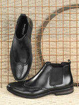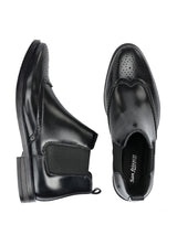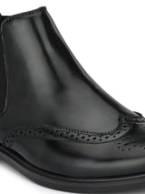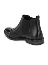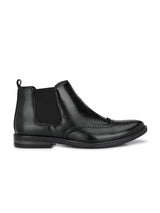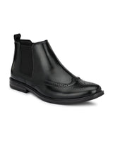 Hague Black Chelsea Ankle Boots with Broguing. Handcrafted with High Quality Faux Leather Upper & Lining, TPR Sole. Only Grade-A quality materials used. San Frissco shoes are all handcrafted to perfection by expert artisans to offer a truly luxe and affordable experience. Hence, each shoe will have a unique hue and polish, and the color may differ slightly from the picture.