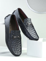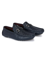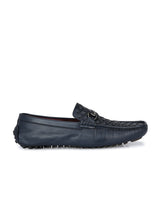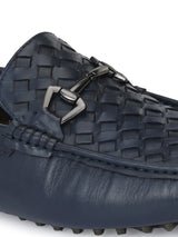Hammel Blue Loafers with Handwoven Textured Detailing with Buckle. Handcrafted with Italian Leather Upper, Genuine Leather Lining & Inner Soles & TPR Sole. Only Grade-A Leather used. San Frisco Luxor shoes are hand-finished and couture-level creations. Hence, each shoe will have a unique hue and polish, and the color may differ slightly from the picture.