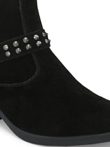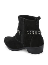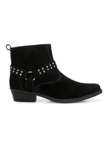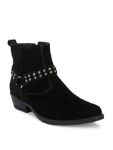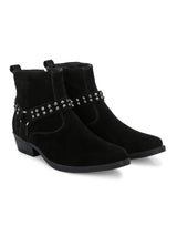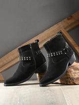 Harold Black Western Boots with Metallic Rivets. Handcrafted with Italian Leather Upper, PU Lining , Inner Soles & TPR Sole. Only Grade-A Leather used. San Frissco Luxor shoes are hand-finished and couture-level creations. Hence, each shoe will have a unique hue and polish, and the color may differ slightly from the picture. |
