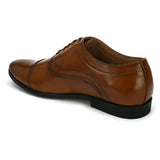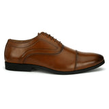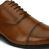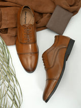 Ledger Tan pointed-toe formal oxfords with central lace-ups. Handcrafted with high quality faux leather upper, PU lining along with a cushioned footbed and a textured and patterned TPR outsole, that has a stacked heel. Only Grade-A quality materials are used. San Frissco shoes are all handcrafted to perfection by expert artisans to offer a truly luxe and affordable experience. Hence, each shoe will have a unique hue and polish, and the color may differ slightly from the picture.
