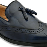 Legacy Blue Textured Tassel Loafers with Brogue Detailing. Handcrafted with High Quality Faux Leather, PU Lining & TPR Sole. Only Grade-A quality materials used.San Frissco shoes are all handcrafted to perfection by expert artisans to offer a true luxe and affordable experience. Hence, each shoe will have a unique hue and polish, and the color may differ slightly from the picture.