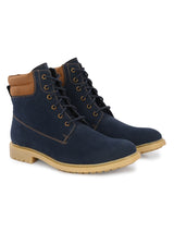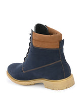 | Lodge Blue Lace-up Ankle Boots with Contrast Outsole. Handcrafted with Italian Leather Upper Genuine Leather Lining , Inner Soles & TPR Sole. Only Grade-A Leather used. San Frissco Luxor shoes are hand-finished and couture-level creations. Hence, each shoe will have a unique hue and polish, and the color may differ slightly from the picture. |