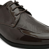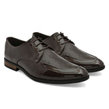 Lure Brown Textured Patent Derby shoes. Handcrafted with High Quality Faux Leather, PU Lining & TPR Sole Only Grade-A quality materials used.San Frissco shoes are all handcrafted to perfection by expert artisans to offer a true luxe and affordable experience. Hence, each shoe will have a unique hue and polish, and the color may differ slightly from the picture.