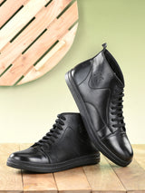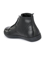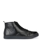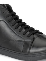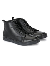 Phoenix Black Mid-Ankle Sneakers. Handcrafted with Faux Leather Upper,  lining & TPR Sole. Only Grade-A Quality materials are used. San Frissco shoes are all handcrafted to perfection by expert artisans to offer a truly luxe and affordable experience. Hence, each shoe will have a unique hue and polish, and the color may differ slightly from the picture.