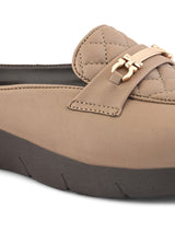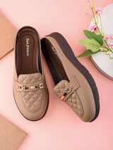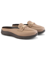 | Scone Beige Women Ultra-light Comfort Mules with Buckle Detailing & Cushioned footbed. Handcrafted with High Quality Faux Leather Upper, Lining, Inner Soles and Textured and patterned EVA outsole. Only Grade-A Quality materials are used. San Frissco shoes are all handcrafted to perfection by expert artisans to offer a truly luxe and affordable experience. Hence, each shoe will have a unique hue and polish, and the color may differ slightly from the picture. |