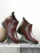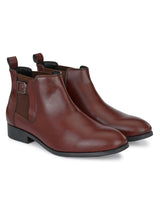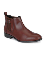 Scott Cherry Chelsea Boots with Buckle. Handcrafted with High Quality Faux Leather, PU Lining & PU Sole. Only Grade-A quality materials used. San Frissco shoes are all handcrafted to perfection by expert artisans to offer a truly luxe and affordable experience. Hence, each shoe will have a unique hue and polish, and the color may differ slightly from the picture.