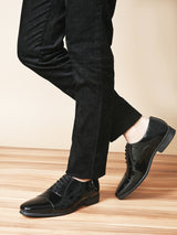 Whimsy Black Formal Oxford Shoes. Handcrafted with High Quality Faux Leather Upper, Lining & TPR Sole. Only Grade-A qualty materials used. San Frissco shoes are all handcrafted to perfection by expert artisans to offer a truly luxe and affordable experience. Hence, each shoe will have a unique hue and polish, and the color may differ slightly from the picture.