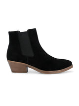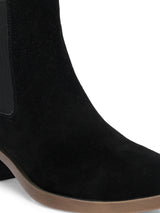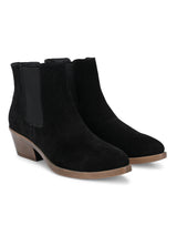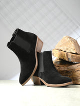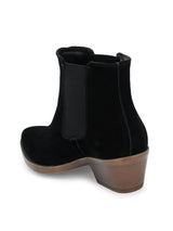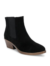 Alexis Black Western Inspired Sleek Mid-Top Boots with a Chunky Block Heel & Cushioned Footbed. Handcrafted with High Quality Suede Upper, Faux Leather Lining, Inner Soles & Textured and patterned TPR outsole. Only Grade-A Quality materials are used. San Frissco shoes are handcrafted perfectly by expert artisans to offer a truly luxe and affordable experience. Hence, each shoe will have a unique hue and polish, and the color may differ slightly from the picture.