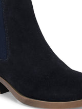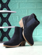 Alexis Blue Western Inspired Sleek Mid-Top Boots with a Chunky Block Heel & Cushioned footbed. Handcrafted with High-Quality Suede Upper, Faux Leather Lining, Inner Soles & Textured and patterned TPR outsole. Only Grade-A Quality materials are used. San Frissco shoes are all handcrafted to perfection by expert artisans to offer a truly luxe and affordable experience. Hence, each shoe will have a unique hue and polish, and the color may differ slightly from the picture.