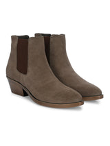 Alexis Grey-Brown Western Inspired Sleek Mid-Top Boots with a Chunky Block Heel & Cushioned footbed. Handcrafted with High Quality Suede Upper, Faux Leather Lining, Inner Soles & Textured and patterned TPR outsole. Only Grade-A Quality materials are used. San Frissco shoes are handcrafted perfectly by expert artisans to offer a truly luxe and affordable experience. Hence, each shoe will have a unique hue and polish, and the color may differ slightly from the picture.