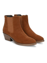 Alexis Rust Western Inspired Sleek Mid-Top Boots with a Chunky Block Heel & Cushioned footbed. Handcrafted with High-Quality Suede Upper, Faux Leather Lining, Inner Soles & Textured and patterned TPR outsole. Only Grade-A Quality materials are used. San Frissco shoes are all handcrafted to perfection by expert artisans to offer a truly luxurious and affordable experience. Hence, each shoe will have a unique hue and polish, and the color may differ slightly from the picture.