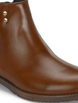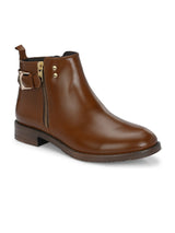 Ariana Tan Mid-Top Boots with a side Latch Detailing, Zipper Closure & Cushioned footbed. Handcrafted with High-Quality Faux Leather Upper, Lining, Inner Soles & Textured and patterned TPR outsole. Only Grade-A Quality materials are used. San Frissco shoes are all handcrafted to perfection by expert artisans to offer a truly luxe and affordable experience. Hence, each shoe will have a unique hue and polish, and the color may differ slightly from the picture.