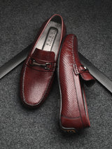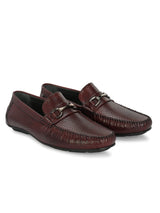 Berman Cherry Textured Driving Loafers with Buckle Detailing. Handcrafted with Italian Leather Upper and Lining , PU Inner Soles & TPR Sole. Only Grade-A Leather used. San Frissco Luxor shoes are hand-finished and couture-level creations. Hence, each shoe will have a unique hue and polish, and the color may differ slightly from the picture. |