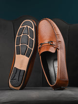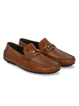 Berman Tan Textured Driving Loafers with Buckle Detailing. Handcrafted with Italian Leather Upper and Lining , PU Inner Soles & TPR Sole. Only Grade-A Leather used. San Frissco Luxor shoes are hand-finished and couture-level creations. Hence, each shoe will have a unique hue and polish, and the color may differ slightly from the picture. |