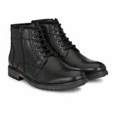 Black Duo Style Lace Up boots. Handcrafted with High-Quality Faux Leather, PU Lining & TPR Sole. Only Grade-A quality materials are used. San Frissco shoes are all handcrafted to perfection by expert artisans to offer a truly luxe and affordable experience. Hence, each shoe will have a unique hue and polish, and the color may differ slightly from the picture.